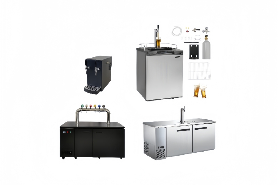 Fresh beer, stored in kegs (such as stainless steel or single-use PET kegs), is drawn into the draft machine's refrigeration chamber via a connecting line. Inside this chamber, an integrated cooling system (utilizing a compressor-driven evaporator or a thermoelectric cooling coil) actively chills the beer.